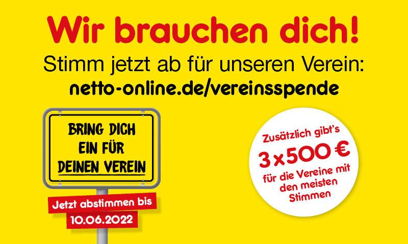 Netto Marken-Discout unterstützt regionale Vereine: Bei der Aktion „Bring dich ein für deinen Verein“ werden Kundenspenden für gemeinnützige Vereine gesammelt. Wir haben uns beworben und benötigen jetzt Deine Unterstützung. Denn Bei großer Bewerberresonanz je Region, entscheidet die Kundenwahl über die regionalen Spendenpartner.